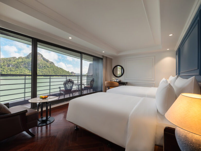 Step into the elegance of our premium cabins, where modern comfort meets timeless charm on the serene waters of Ha Long Bay. Each suite is designed for privacy and relaxation, featuring a private bathroom with bathtub and/or shower, free Wi-Fi, cable TV, minibar, and a Nespresso coffee machine.