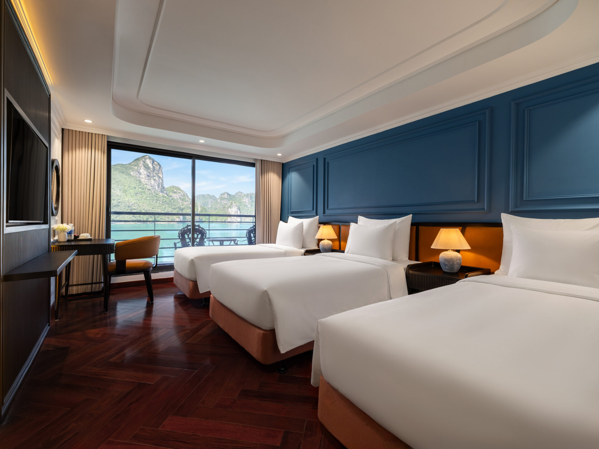 The ultimate luxury at sea, our Royal Family Suite offers an expansive 80m² of elegance and comfort. Perfect for families or groups, it features two spacious bedrooms, a large private balcony, floor-to-ceiling windows, and a stylish living area. With breathtaking bay views and top-class amenities, this suite promises an unforgettable cruising experience