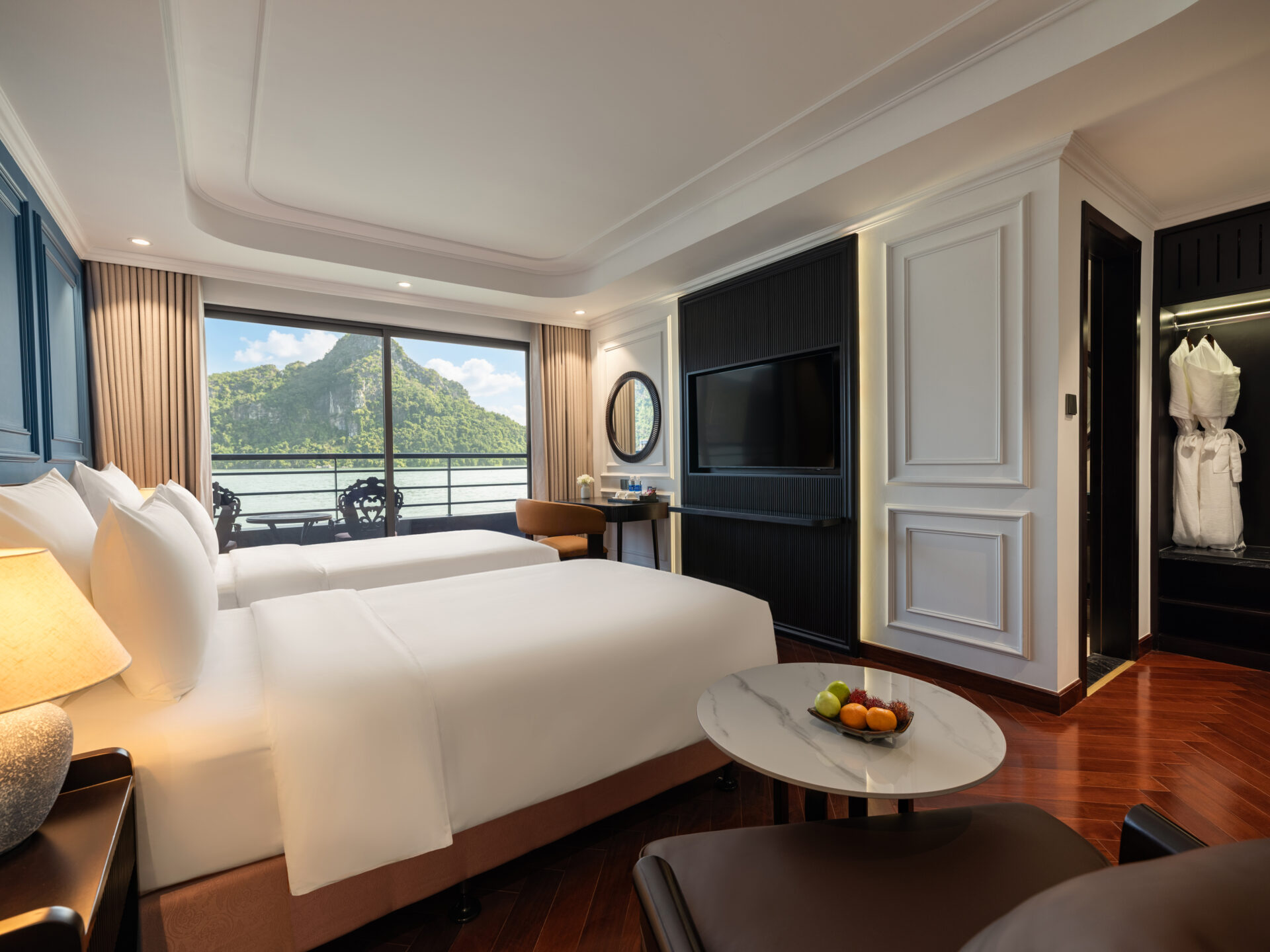 Experience true indulgence in our Senior Suite, offering 34m² of refined luxury. With a private balcony, floor-to-ceiling windows, spacious king-size bed, and a modern ensuite bathroom, this suite invites you to immerse yourself in breathtaking bay views while enjoying ultimate comfort and privacy
